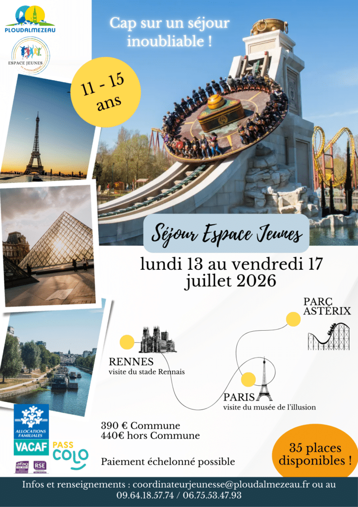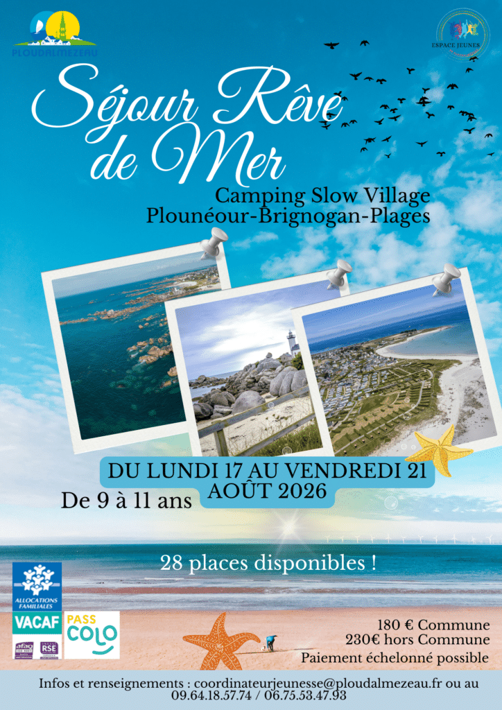 L’Espace Jeunes de Ploudalmézeau propose un séjour exceptionnel pour les 11–15 ans du lundi 13 au vendredi 17 juillet 2026 !