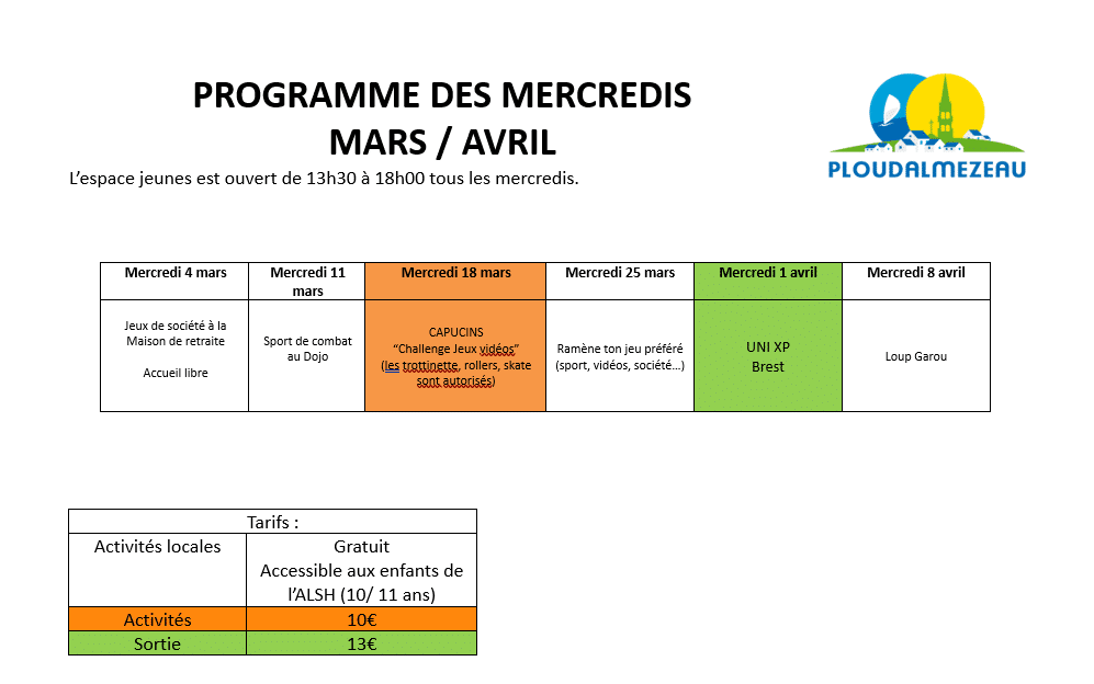 Programme des mercredis mars/avril