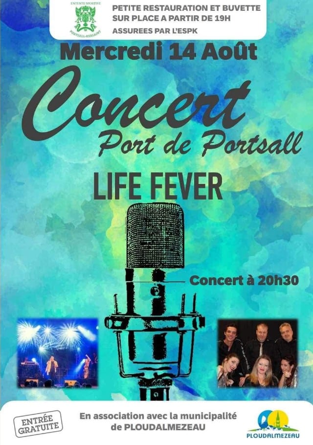 L’ESPK organise en association avec la municipalité de Ploudalmézeau un concert des LIFE FEVER le mercredi 14 août. Début du concert à 20h30 au port de Portsall. Petite restauration et buvette sur place à partir de 19h00.