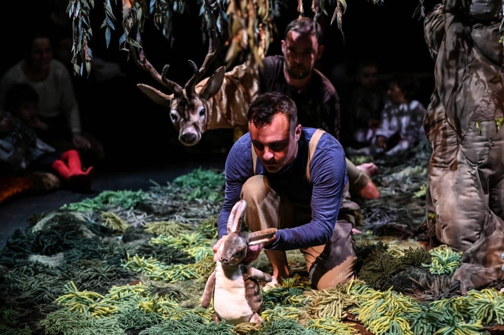 Dans l’arbre, vivent des animaux marionnettes qui pointent leur nez