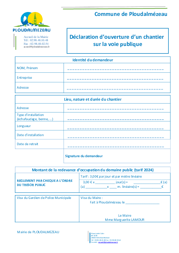 Déclaration d'ouverture de chantier sur la voie publique 2024